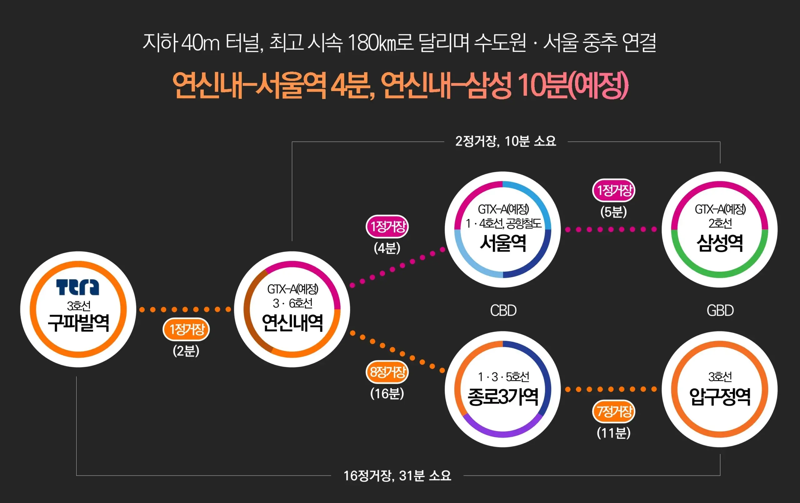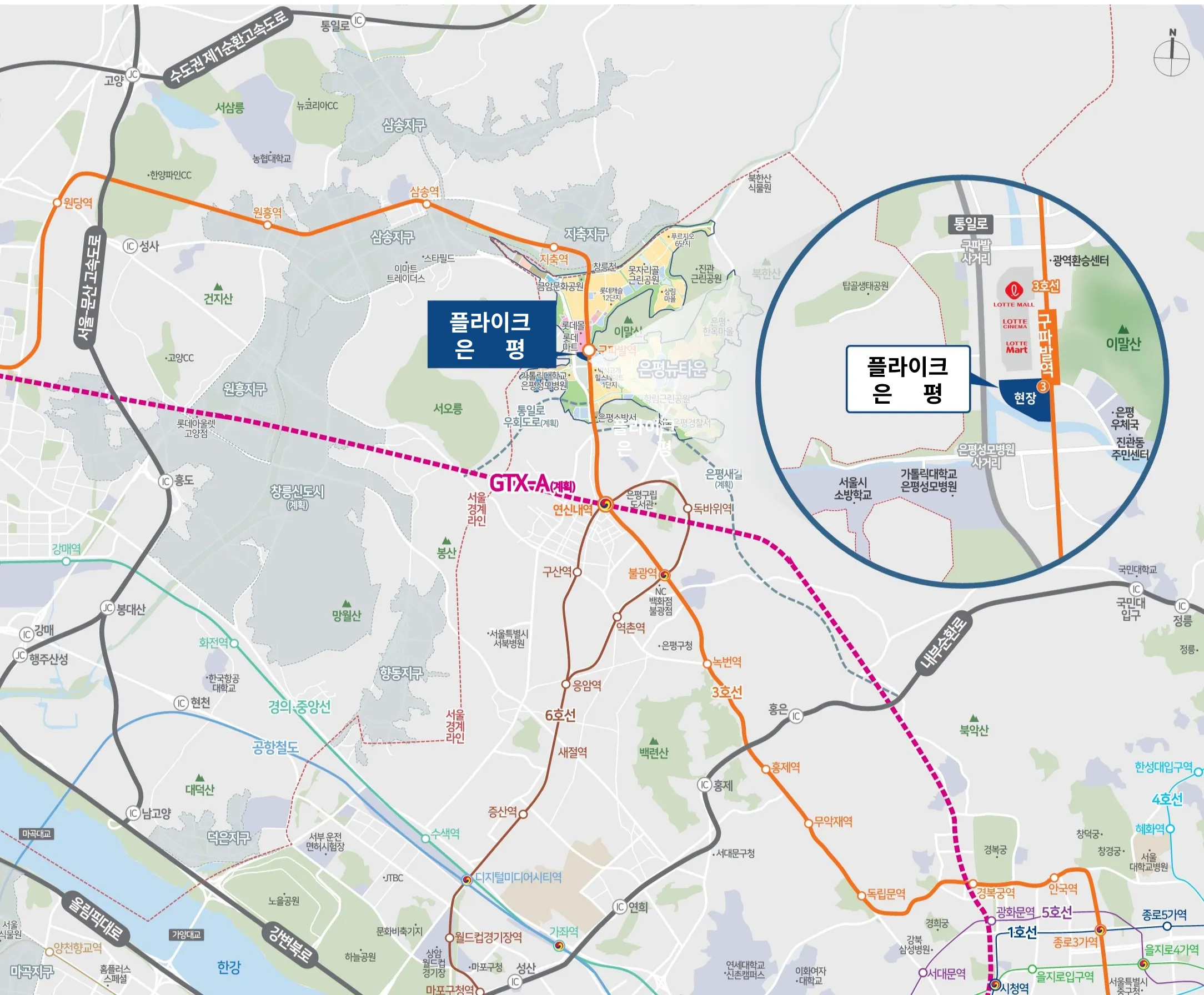 지하철 3호선 구파발역이 바로 앞에 위치한 역세권 단지로 광화문, 강남권 업무지구인 압구정역까지빠르가 도착할수 있습니다.구파발역에서 1정거장 거리인 연신내역에는 GTX-A노선이 2024년 개통 예정입니다.