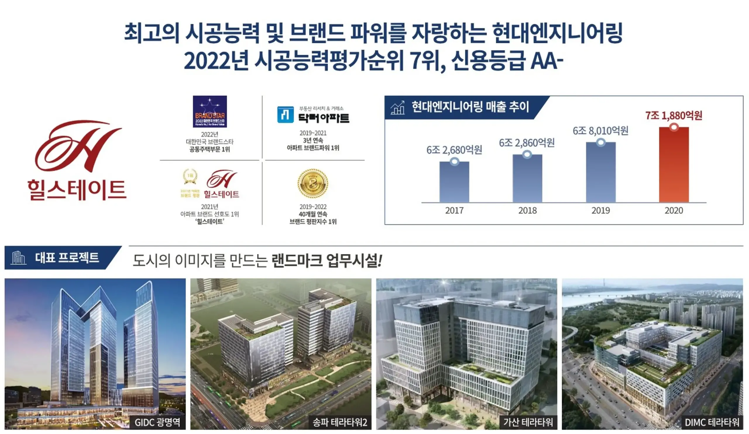 플라이크 은평은 최고의 시공능력과 브랜드파워를 지닌 현대엔지니어링이 시공을 맡았습니다. 현대엔지니링의 우수한 기술력과 노하우를 통하여 또 하나의 랜드마크를 완성해 나갈것입니다.